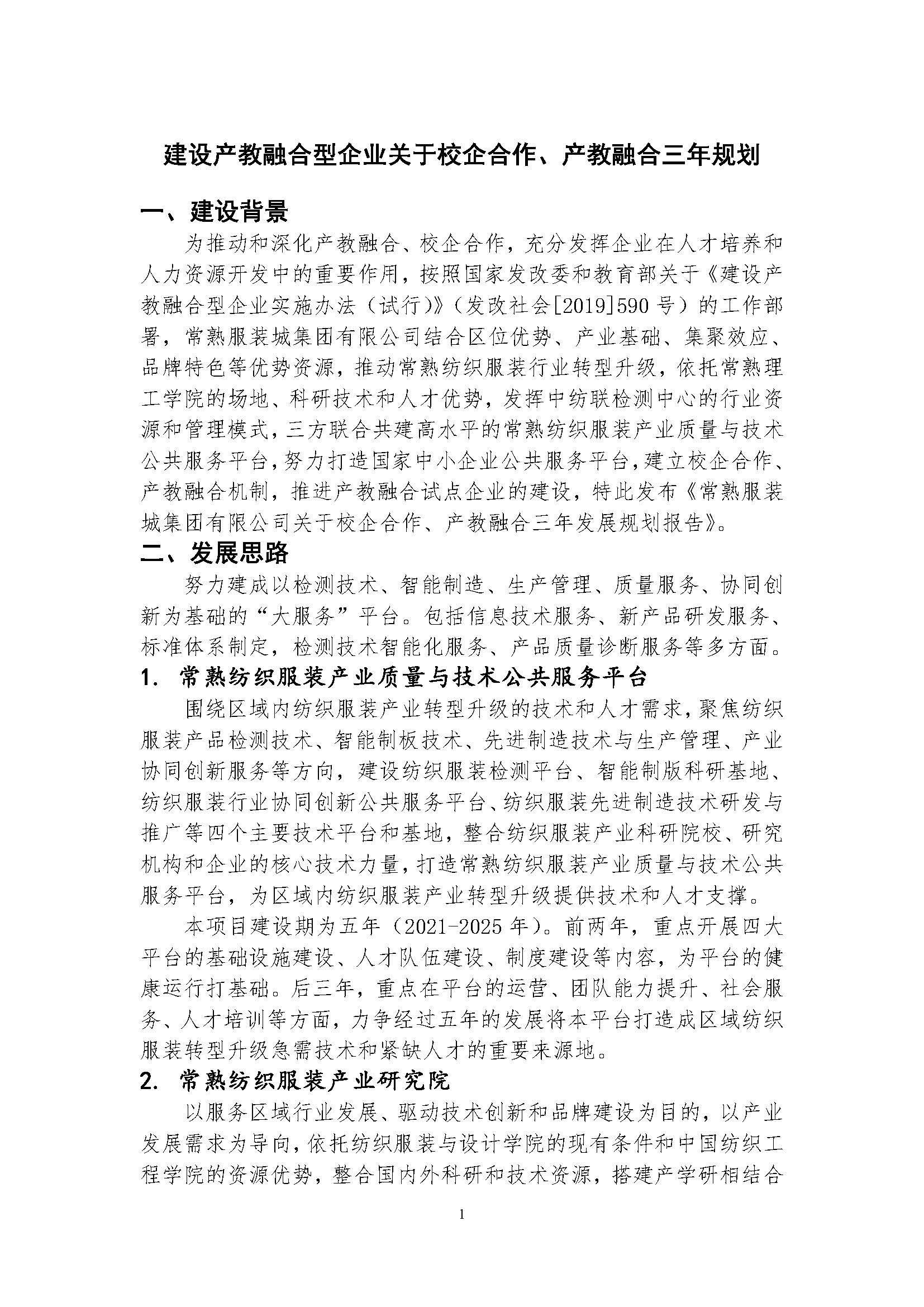 建設(shè)產(chǎn)教融合型企業(yè)關(guān)于校企合作、產(chǎn)教融合三年發(fā)展規(guī)劃報告